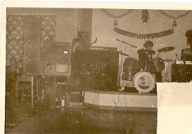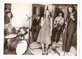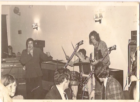 Hammond supported by beer crates. Sharma tone cabinet on table. I.M.P at Boston United football club (1978)